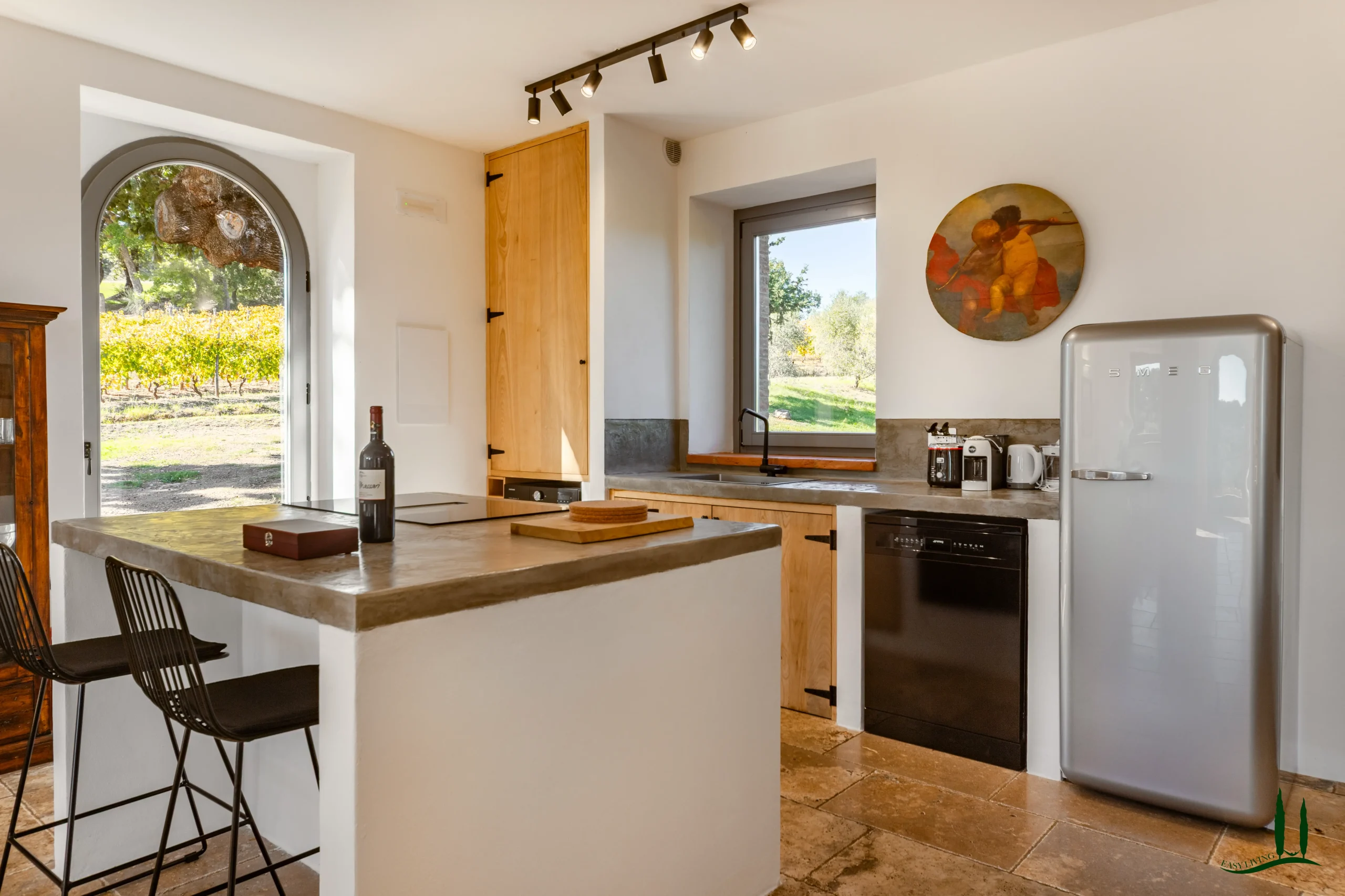 On hills of the Maremma, just a short distance from the medieval villages of Roccastrada and Civitella Marittima, this beautifully restored stone villa offers a rare combination of timeless Tuscan charm, energy-efficient living, and a small yet distinctive organic vineyard. Located in a protected natural reserve, the property enjoys breathtaking panoramic views that stretch across the landscape to the iconic Val d’Orcia.