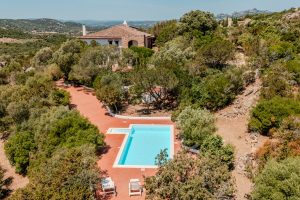 The property is enveloped by a natural garden where a swimming pool stands harmoniously inserted in the landscape ideal for relaxing in any season. The villa is embellished with natural materials and details that speak of Sardinia and beauty. The villa consists of four cozy bedrooms, three bathrooms, a beautiful and bright living area with fireplace, separate kitchen with access to the outdoor patio. Laundry area and two covered parking spaces complete the property.